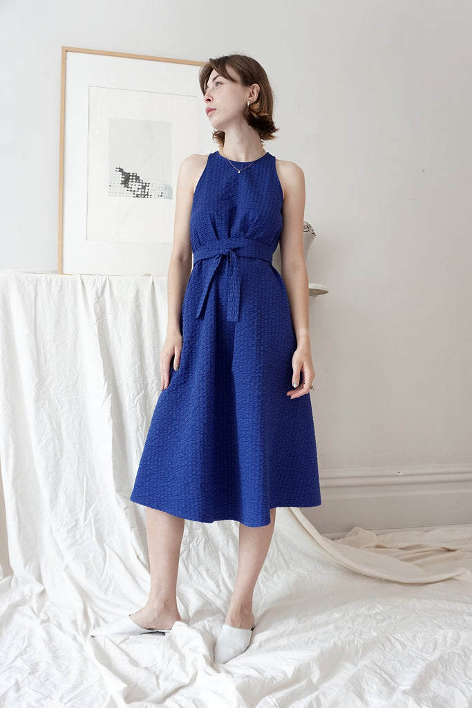 Tissu : 100 % coton seersucker dans une véritable teinte de lapis, se situant juste entre le bleu et le violet.